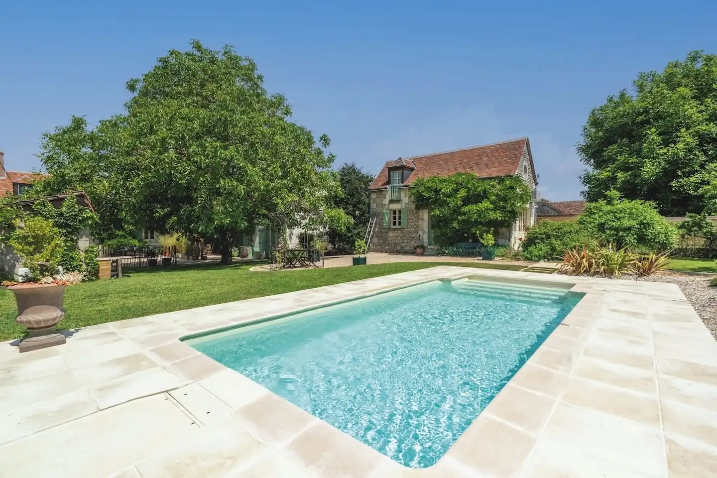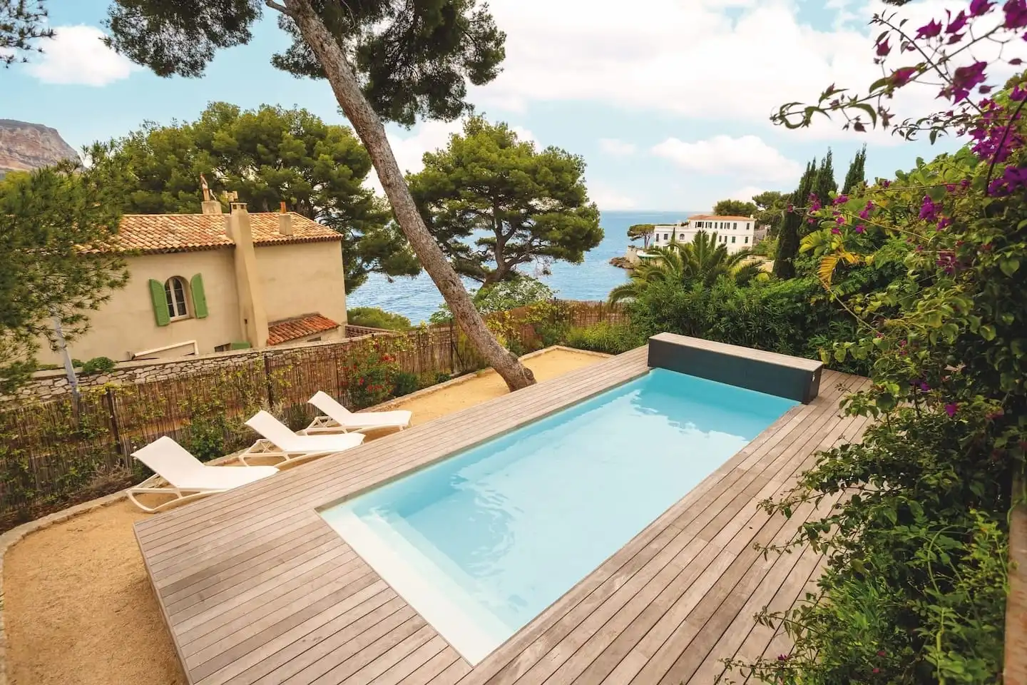 Enfin, Desjoyaux propose aussi des éléments de confort pour se sentir mieux dans et autour du bassin pour en faire un lieu de bien-être : pompe à chaleur, bâche à bulles, mobilier de jardin...